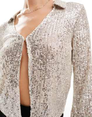 Only – Pailletten-Bluse in Silber mit offener Vorderseite