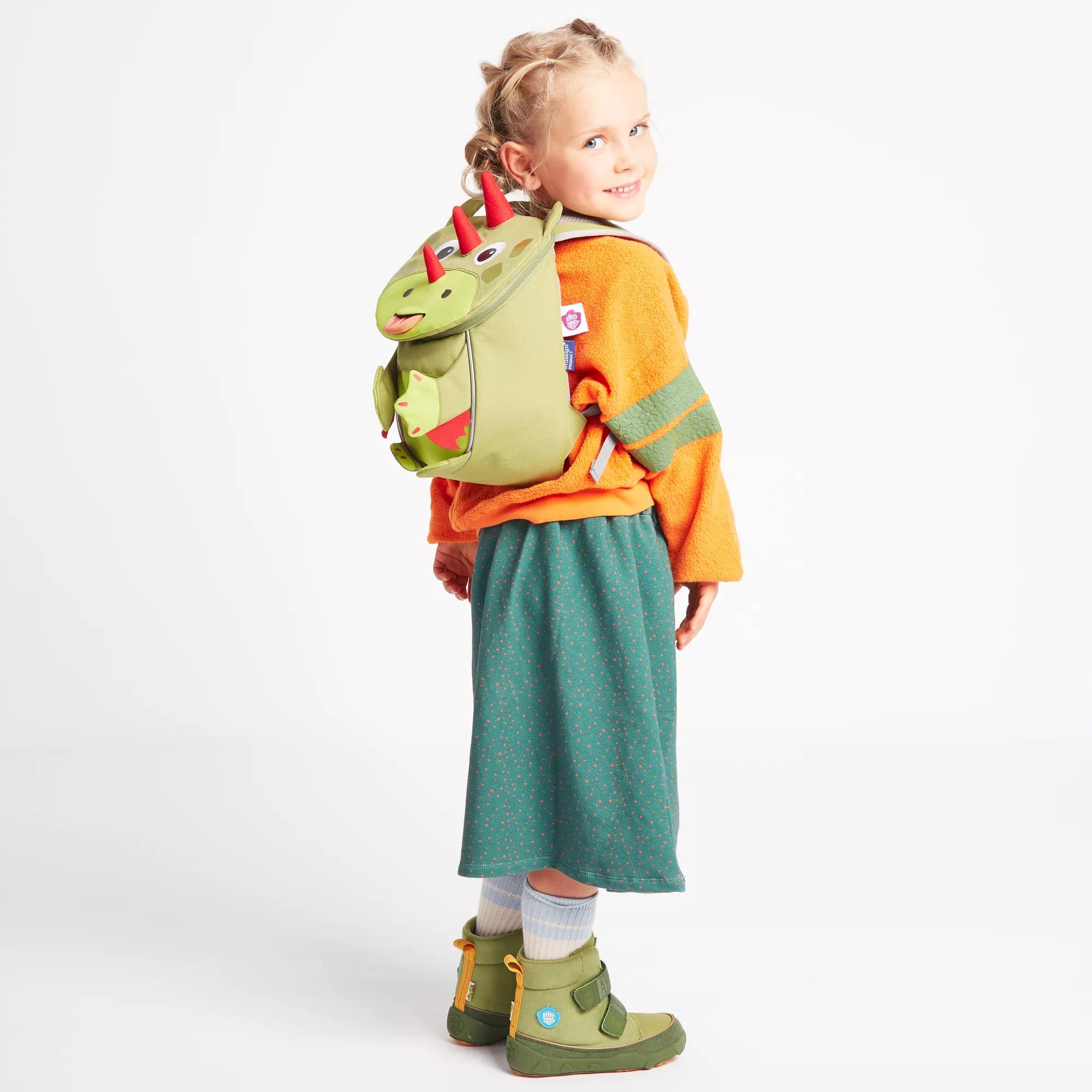 Affenzahn Kleiner Freund Kindergarten-Rucksack für 1-3 Jährige Ergonomisch Reflektierend Ziehzunge mit Namensschild Drache - Dunkelgrün : Amazon.de: Fashion