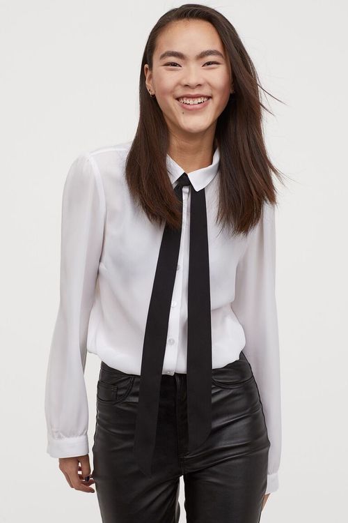 Weisse Bluse mit schwarzer Schleife H\u0026M | Kaufen auf Ricardo